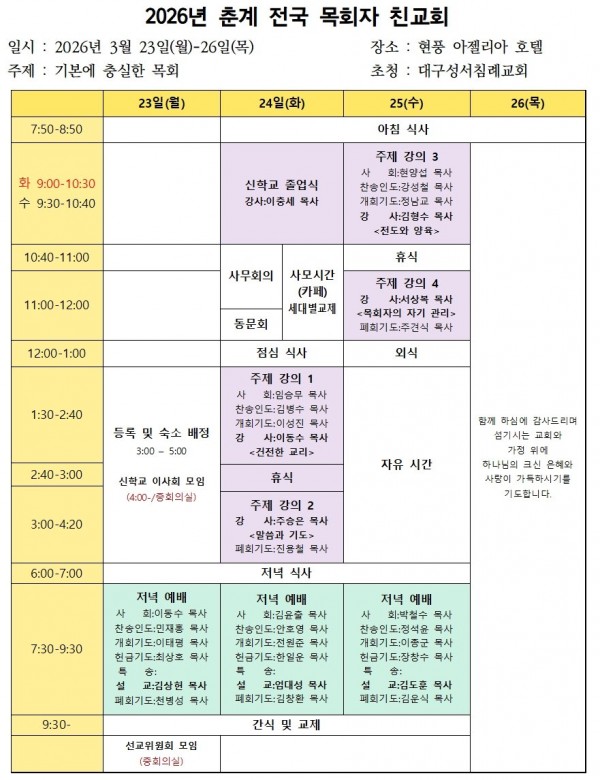 2026년 춘계 전국목회자친교회에 초청합니다.